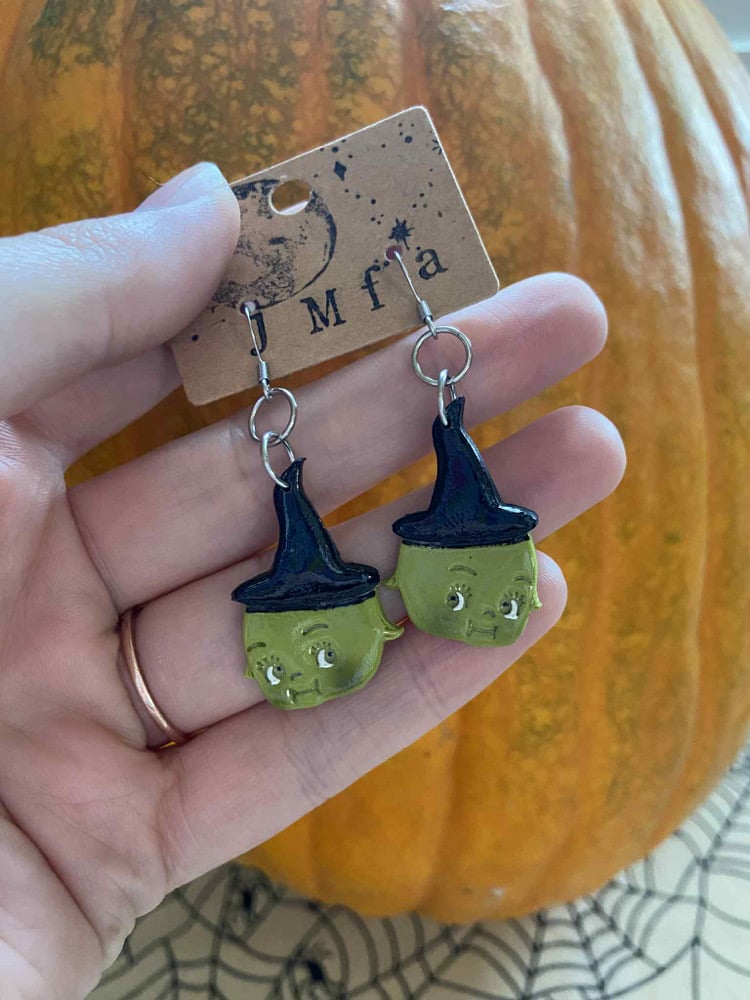 kewpie witch halloween earrings