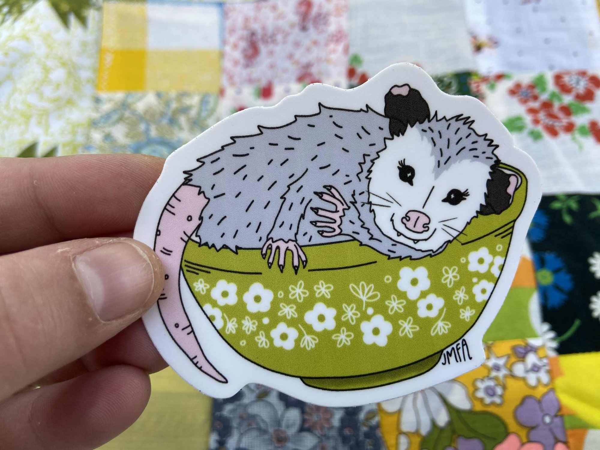 sticker made from weather-resistant vinyl with original artwork by r. rue