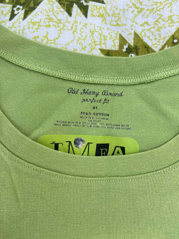 this repurposed tee was locally thrifted and features original artwork by r. rue. it is 100% cotton, vintage old navy “perfect fit”, size extra large.
